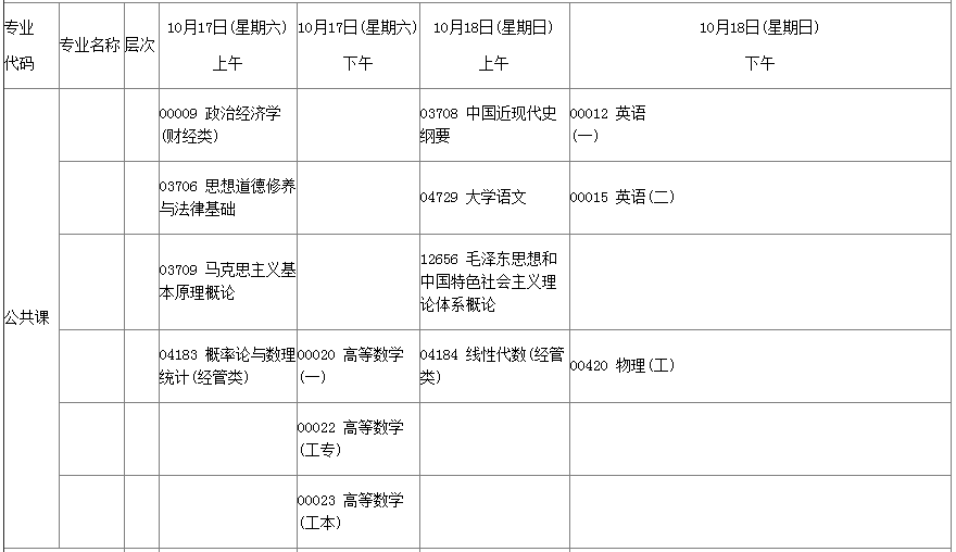 點(diǎn)擊查看完整版>>>2020年10月寧夏高等教育自學(xué)考試專業(yè)課程時(shí)間表