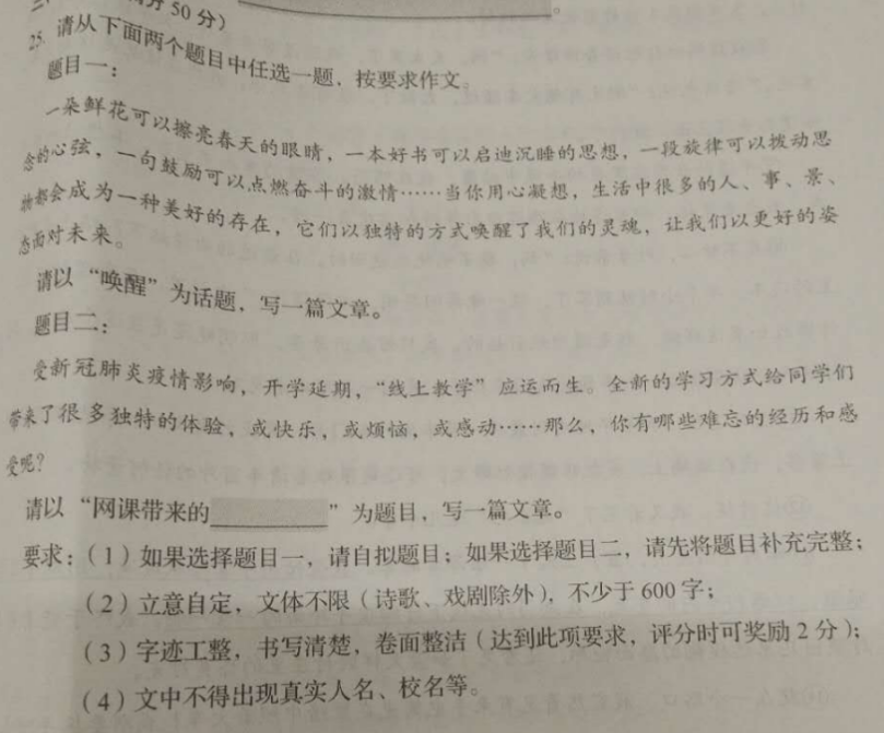 2020作文題目