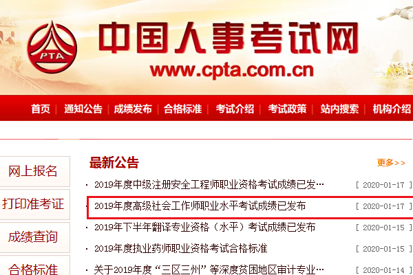 2019年陜西高級(jí)社會(huì)工作師成績(jī)查詢時(shí)間為2020年1月17日。