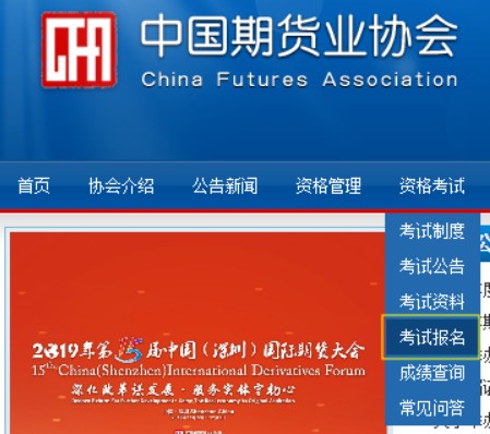 第一步:登錄中國期貨業(yè)協(xié)會網(wǎng)站——點擊“考試報名”,如圖所示: