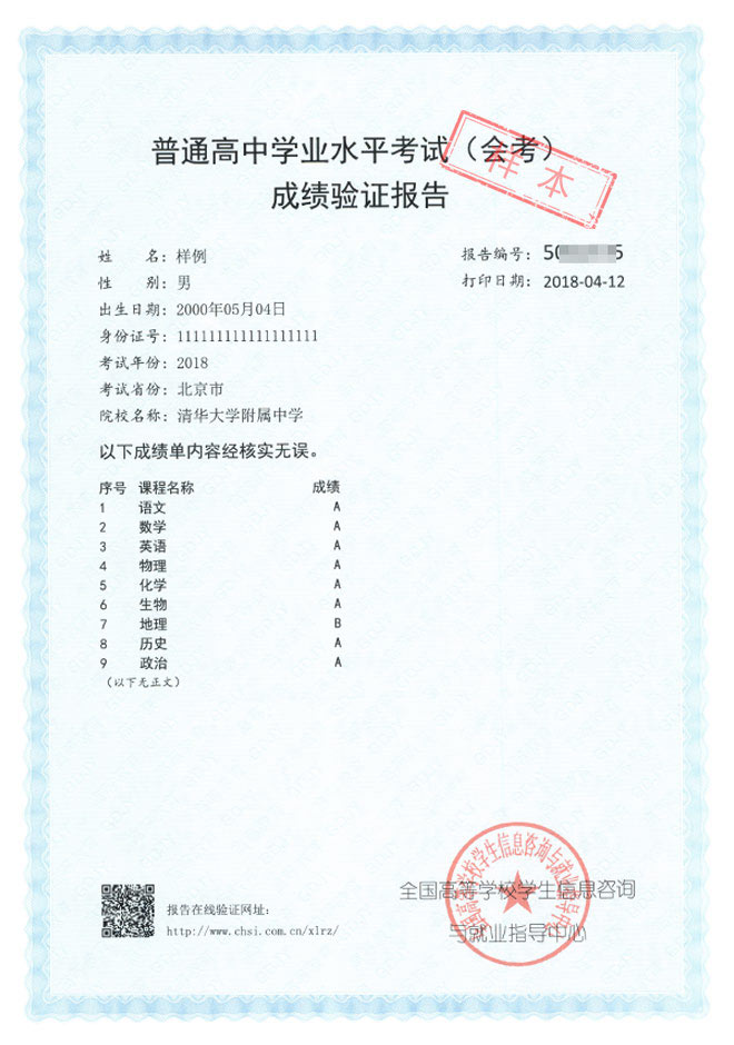 1、《普通高中學(xué)業(yè)水平考試(會考)成績驗證報告》由全國高等學(xué)校學(xué)生信息咨詢與就業(yè)指導(dǎo)中心出具,中心是教育部授權(quán)開展中國高等教育學(xué)歷認證服務(wù)的專門機構(gòu);