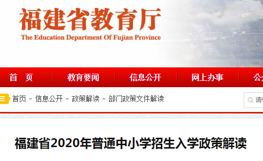 中考頻道從福建省教育廳了解到,2020年福建省普通中小學(xué)招生入學(xué)政策解讀已公布,具體如下: