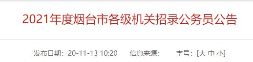 根據(jù)公務(wù)員法和公務(wù)員錄用有關(guān)規(guī)定,現(xiàn)將2021年度煙臺市各級機關(guān)招錄公務(wù)員有關(guān)事項公告如下: