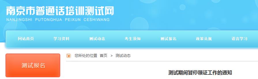 根據(jù)省語委統(tǒng)一部署,南京市普通話水平測試考點2020年6月15至8月8日為普通話測試時間,為保障測試工作的順利開展,保證考生安全,測試期間關(guān)閉現(xiàn)場領(lǐng)證及網(wǎng)上預約領(lǐng)證通道,如考生急需證書,可以登錄江蘇省政務服務網(wǎng),在“江蘇省教育廳綜合服務旗艦店”之“江蘇省普通話水平測試在線報名”欄目,在“證書補辦”專欄申請證書補辦,江蘇省普通話測試中心將在5個工作日之內(nèi)(節(jié)假日順延)寄出證書(郵費自理)。