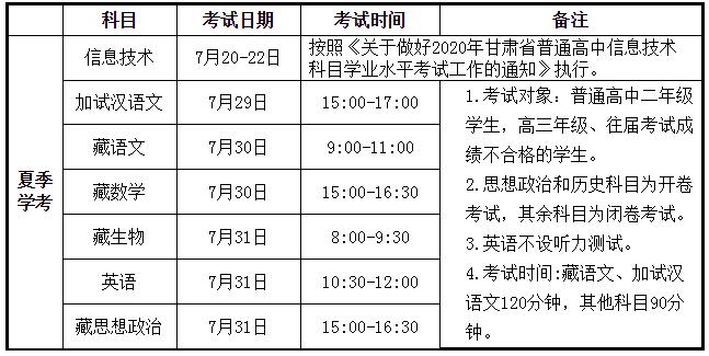 2020年夏季甘肅張掖普通高中學(xué)業(yè)水平以藏文答卷為主,加試漢語文的考生考試時間安排在2020年7月29日至7月31日期間。