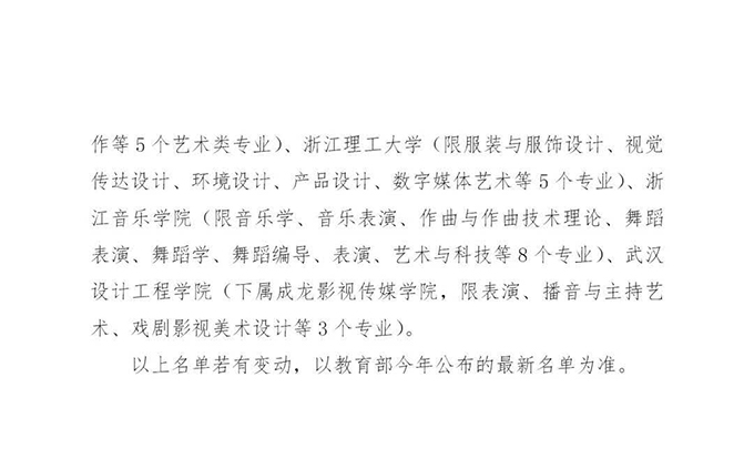 包括獨立設置的藝術院校、參照獨立設置藝術院校執(zhí)行的其他院校,部屬高校及部分省屬高校除美術類專業(yè)之外的藝術類專業(yè),省屬公費師范生、市級政府委托培養(yǎng)師范生專業(yè)招生。