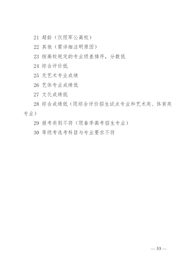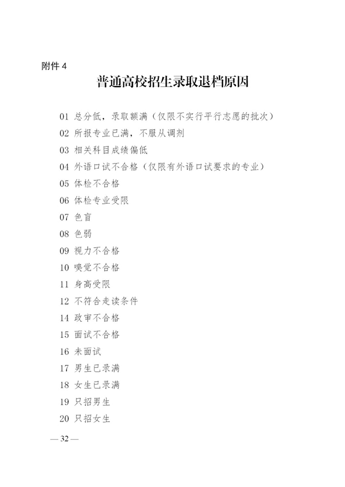 (五)退檔。確定退檔考生后,要注明退檔原因并及時通過錄取系統(tǒng)辦理退檔。填寫的退檔原因必須與實際情況相符。省教育招生考試院要認真審核退檔情況,如有疑問,應與相關高校溝通協(xié)調或提出復議要求,高校應認真對待,及時糾正、答復或形成復議結果傳真至省教育招生考試院。