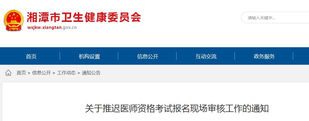 由于近期發(fā)生新型冠狀病毒感染的肺炎疫情,根據(jù)國家有關(guān)部門通知精神,原定于2020年2月4日-17日的國家醫(yī)師資格考試現(xiàn)場審核工作推遲,具體審核時間另行通知。請考生相互轉(zhuǎn)告,并關(guān)注湖南醫(yī)考網(wǎng)和湘潭市衛(wèi)生健康委員會,及時獲取醫(yī)考相關(guān)信息!