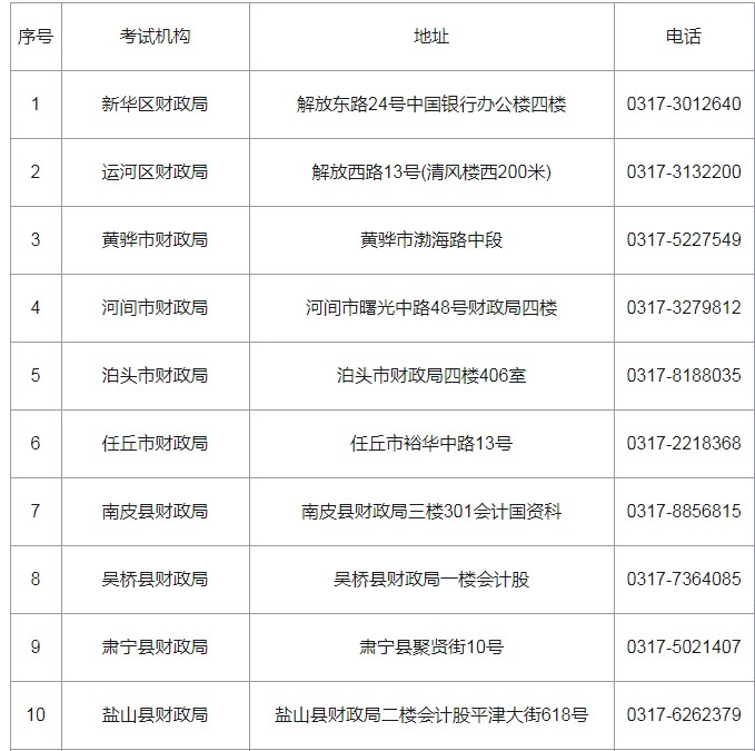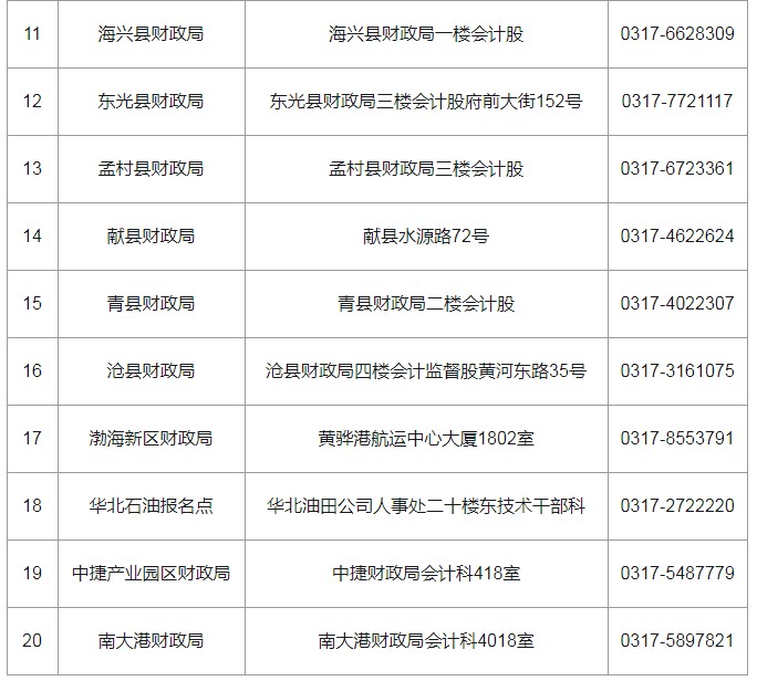 滄州市各縣(市、區(qū))考試機(jī)構(gòu)聯(lián)系方式
