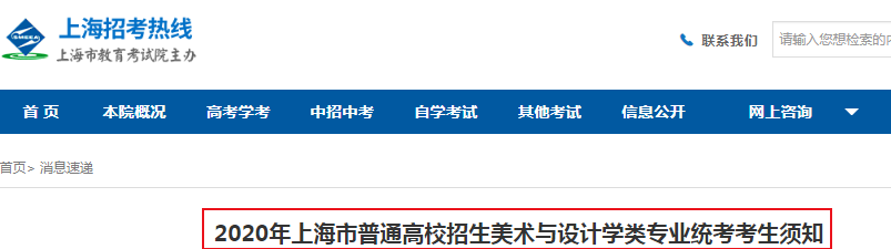 從上海市教育考試院了解到,2020年上海市普通高校招生美術(shù)與設(shè)計(jì)學(xué)類專業(yè)統(tǒng)考考生須知已發(fā)布,現(xiàn)將有關(guān)事宜通知如下: