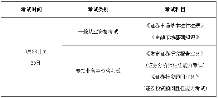 考試安排為“一般從業(yè)資格考試”和“專項(xiàng)業(yè)務(wù)類資格考試”4個(gè)科目考試。