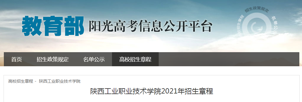 從教育部陽光高考信息公開平臺獲悉,陜西工業(yè)職業(yè)技術(shù)學院2021年招生章程已公布,具體詳情如下: