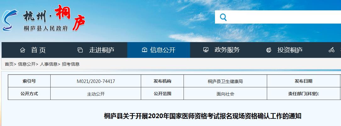 從桐廬縣人民政府獲悉,2020年浙江杭州市桐廬縣醫(yī)師資格現(xiàn)場(chǎng)確認(rèn)時(shí)間為4月1日-4月3日,具體詳情如下: