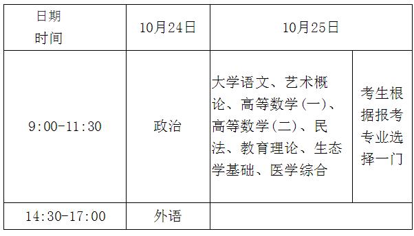 2、專(zhuān)科起點(diǎn)升本科考試時(shí)間表