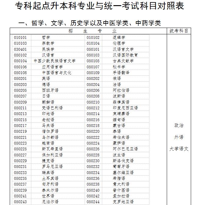 點擊查看完整版>>>??破瘘c升本科專業(yè)與統(tǒng)一考試科目對照表
