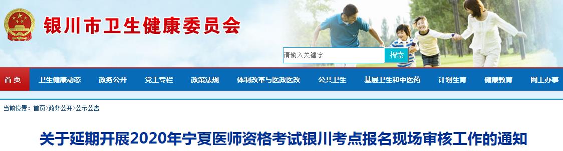 從銀川市衛(wèi)生健康委員會獲悉,2020年寧夏銀川市醫(yī)師資格考試報名現(xiàn)場審核工作延期開展通知已公布,請相關人員仔細閱讀,具體詳情如下: