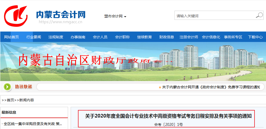 根據(jù)內(nèi)蒙古會計網(wǎng)發(fā)布的《2020年度內(nèi)蒙古會計專業(yè)技術(shù)高級資格考試有關(guān)事項的公告》得知,2020年內(nèi)蒙古赤峰高級會計師考試報名時間為2020年3月10日至31日,報名入口為“全國會計資格評價網(wǎng)”,詳細內(nèi)容如下: