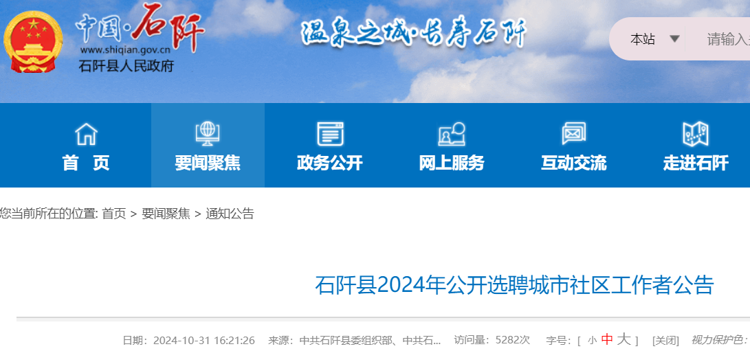 本次選聘工作的相關(guān)信息在“石阡縣人民政府網(wǎng)”(網(wǎng)址:https://www.shiqian.gov.cn)公開發(fā)布。