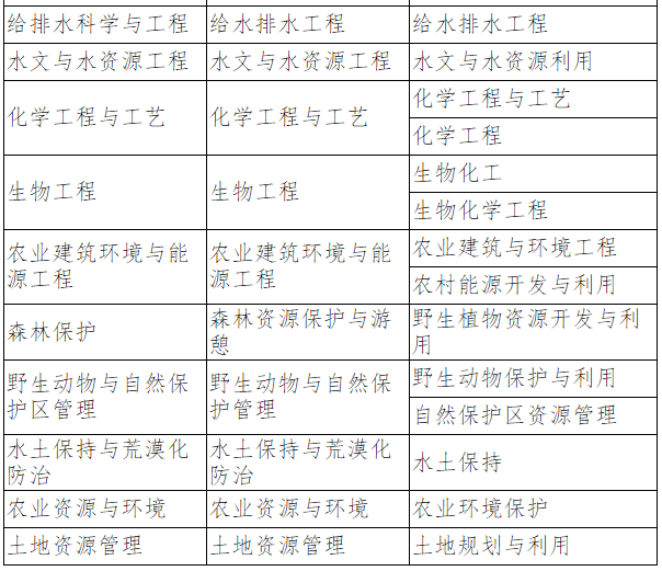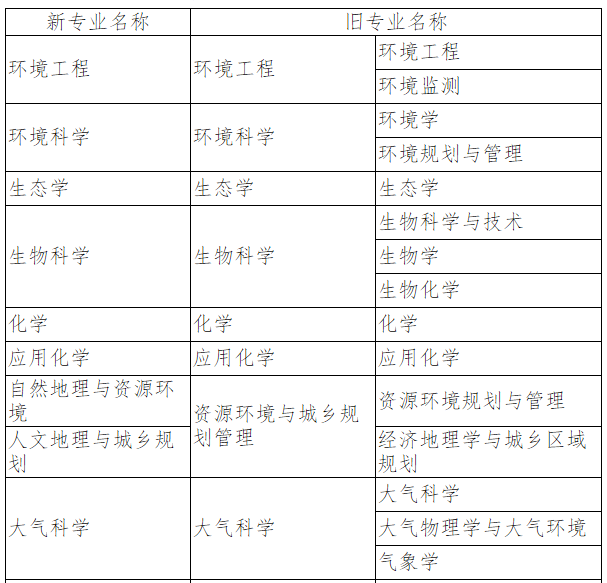 環(huán)境保護(hù)相關(guān)專業(yè)新舊對(duì)應(yīng)表