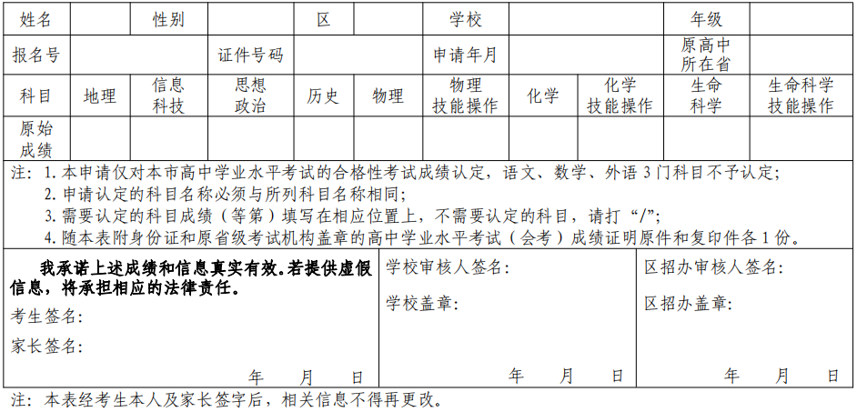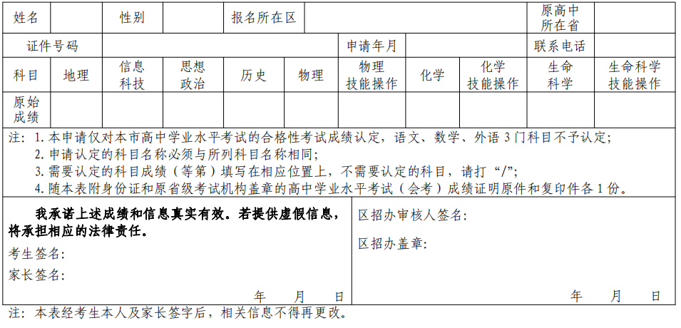 3.《外省市普通高中學(xué)業(yè)水平考試成績轉(zhuǎn)入認(rèn)定申請表》(其他考生)