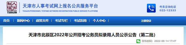 2022年天津市北辰區(qū)公開招考公務(wù)員擬錄用人員公示公告(第二批)已公布,為了方便廣大考生的查閱,下面為您詳細(xì)介紹一下本次擬錄用人員公示的具體事宜,希望廣大考生及時(shí)關(guān)注,如有相關(guān)疑問(wèn),請(qǐng)關(guān)注公務(wù)員頻道為您實(shí)時(shí)做出的更新。