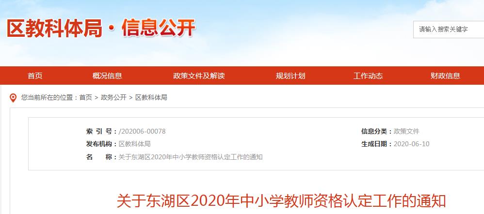 從東湖區(qū)教科體局獲悉,2020年江西南昌東湖區(qū)中小學教師資格認定工作公告已公布,網(wǎng)報時間為6月11日-24日,具體詳情如下: