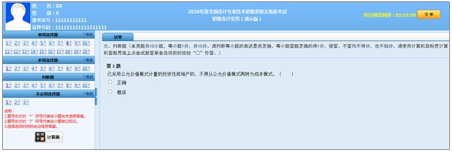 根據(jù)財政部公布的初級會計職稱的無紙化模擬答題系統(tǒng)獲悉: