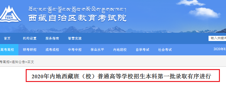 從西藏教育考試院了解到,2020年內(nèi)地西藏班(校)普通高等學(xué)校招生本科第一批錄取正在有序進(jìn)行,為方便考生了解情況,現(xiàn)將有關(guān)事宜通知如下:
