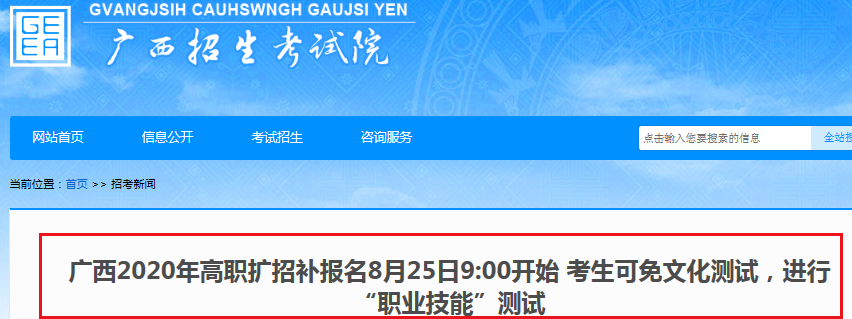 從廣西招生考試院了解到,為深入貫徹落實(shí)國(guó)務(wù)院關(guān)于高職擴(kuò)招的決策部署,切實(shí)做好我區(qū)高職擴(kuò)招工作,我區(qū)將于8月25日9:00至31日17:30開展2020年高職擴(kuò)招補(bǔ)報(bào)名工作,現(xiàn)將有關(guān)事宜通知如下:
