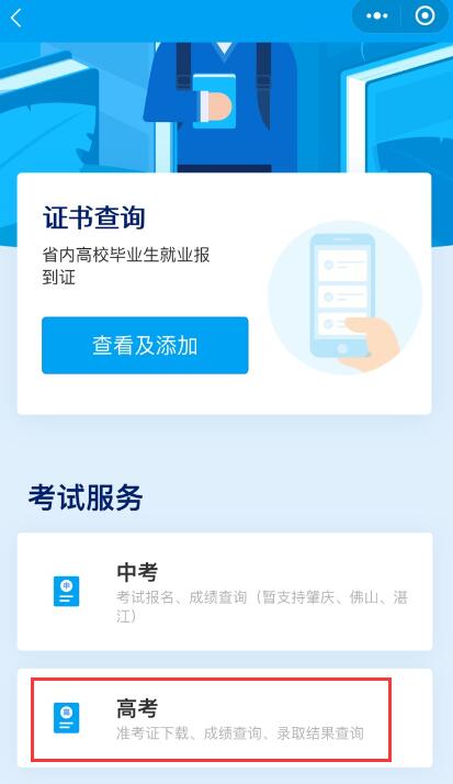 佛山高考考生進(jìn)入微信,在搜索框輸入“粵省事”,點(diǎn)擊“搜一搜粵省事”,進(jìn)入“粵省事”小程序,點(diǎn)擊“專(zhuān)區(qū)”板塊,選擇“教育服務(wù)專(zhuān)區(qū)”,再選擇“高考”,點(diǎn)擊“準(zhǔn)考證查詢(xún)及下載”,通過(guò)考生號(hào)和密碼登錄即可查看準(zhǔn)考證或?qū)⑵浒l(fā)送至考生指定郵箱進(jìn)行存檔打印。