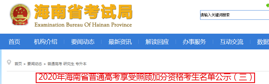從海南省考試局了解到,2020年海南省普通高考享受照顧加分資格考生名單已公布,為方便考生查閱,現(xiàn)將具體人員名單整理如下: