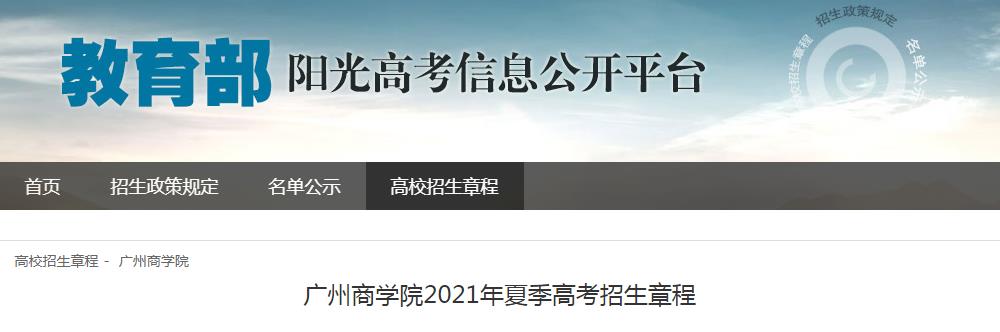 從教育部陽(yáng)光高考信息公開(kāi)平臺(tái)獲悉,廣州商學(xué)院2021年夏季高考招生章程已公布,具體詳情如下: