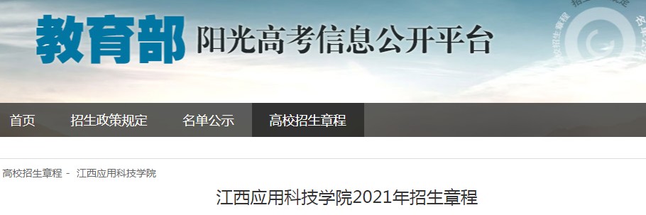 從教育部陽光高考信息公開平臺獲悉,江西應(yīng)用科技學(xué)院2021年招生章程已公布,具體詳情如下: