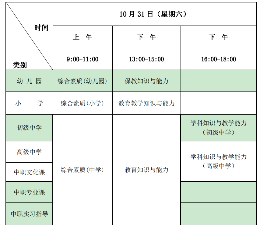 2.高級(jí)中學(xué)、中職文化課的學(xué)科知識(shí)與教學(xué)能力科目為:語(yǔ)文、數(shù)學(xué)、物理、化學(xué)、生物、歷史、地理、思想政治、英語(yǔ)、音樂(lè)、美術(shù)、體育與健康、信息技術(shù)、通用技術(shù)14個(gè)學(xué)科。
