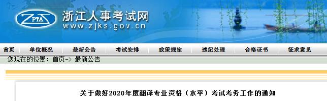 從浙江人事考試網(wǎng)獲悉,2020年浙江翻譯專業(yè)資格(水平)考試考務(wù)工作的通知已公布,報(bào)名時(shí)間為9月10日-19日,11月14日-15日舉行考試,具體詳情如下: