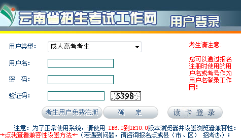 報名的具體流程請考生認(rèn)真閱讀并按照《2020年云南省成人高考網(wǎng)上報名流程》操作。