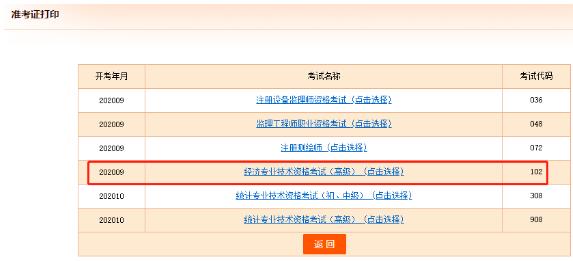 2、點擊“經濟專業(yè)技術資格考試(高級)”,進入打印界面: