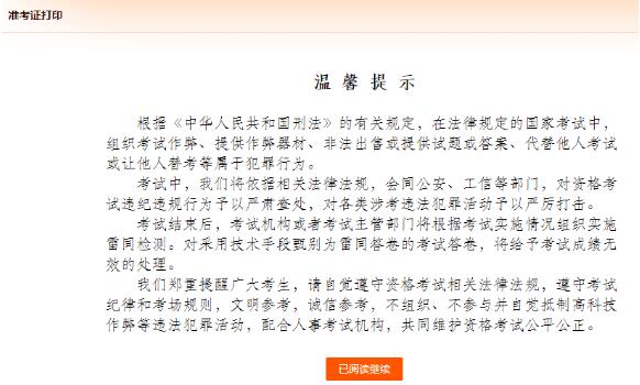 3、閱讀溫馨提示,點擊“已閱讀繼續(xù)”。