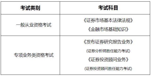 考試安排為“一般從業(yè)資格考試”和“專項業(yè)務(wù)類資格考試”4個科目。
