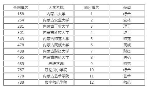 考生和家長在報考的時候不知道該怎么選擇學校,內(nèi)蒙古大學、內(nèi)蒙古農(nóng)業(yè)大學、內(nèi)蒙古工業(yè)大學在內(nèi)蒙古本科大學排名中位居前三位。今天整理了2021內(nèi)蒙古本科大學排名相關內(nèi)容,供大家參考,來看一下!