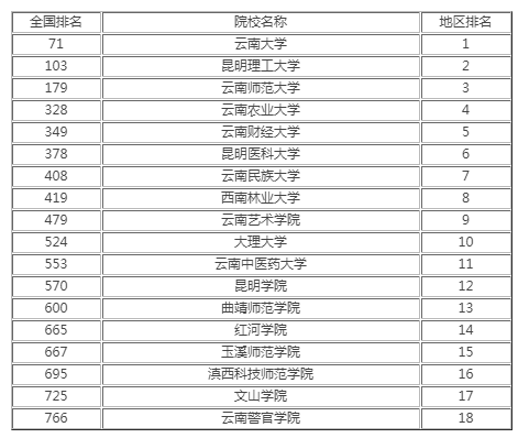 高考填報(bào)志愿的時(shí)候,考生和家長(zhǎng)都會(huì)關(guān)注每個(gè)省市有多少大學(xué),云南大學(xué)、昆明理工大學(xué)、云南師范大學(xué)在云南省本科大學(xué)排名中位居前三位。下面是整理的云南高校排名,大家可以參考一下。
