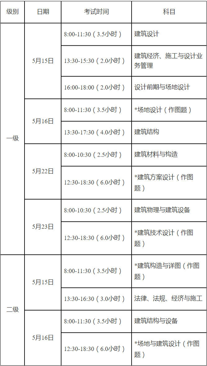 附件:1.2021年度全國(guó)一、二級(jí)注冊(cè)建筑師資格考試科目時(shí)間表