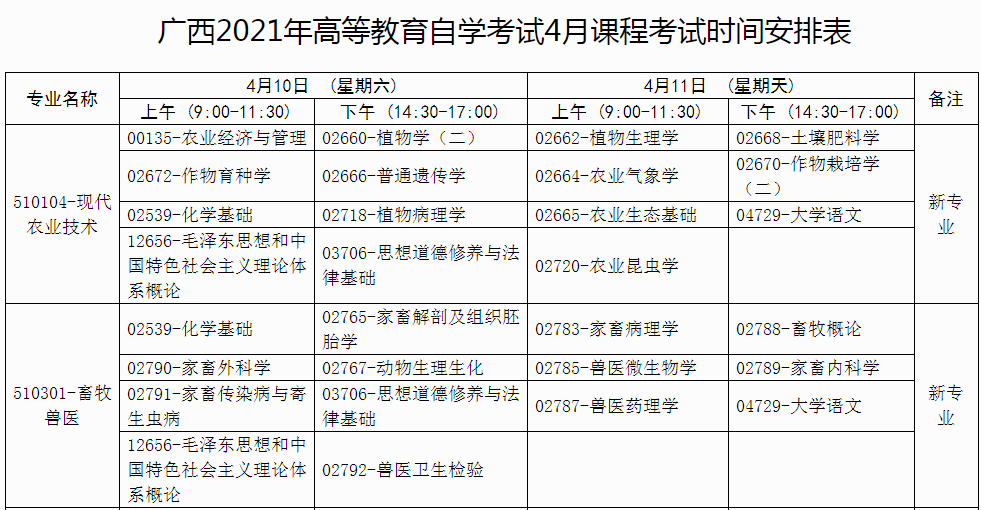 點(diǎn)擊查看完整版>>>廣西2021年高等教育自學(xué)考試4月課程考試時(shí)間安排表