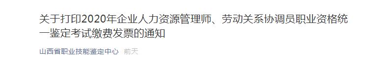 從山西省職業(yè)技能鑒定中心微信公眾號獲悉,2020年山西人力資源管理師考試繳費發(fā)票打印通知已公布,請相關人員仔細閱讀,具體詳情如下: