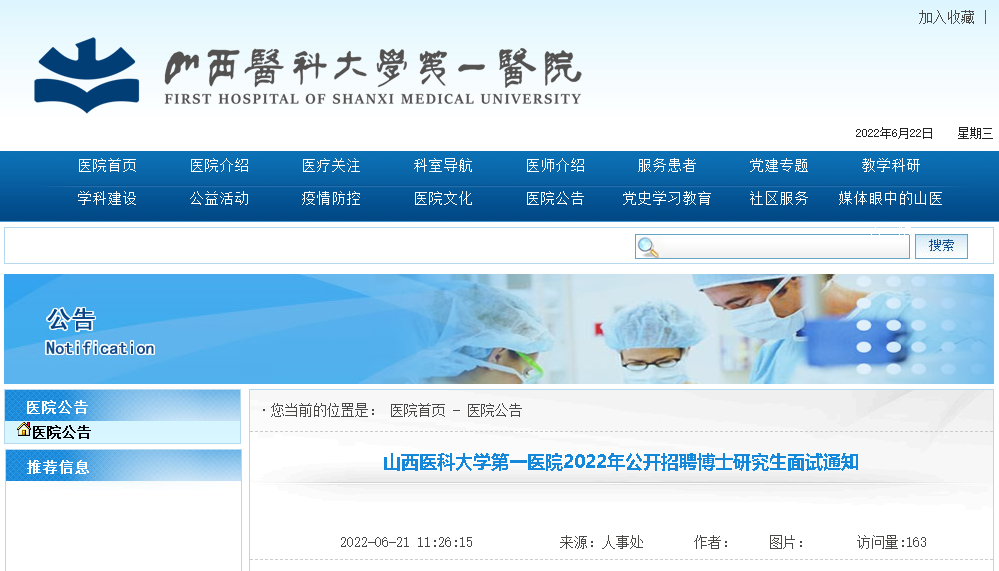 2022山西醫(yī)科大學第一醫(yī)院招聘博士研究生面試通知已出,詳細請見通知內(nèi),現(xiàn)將招聘通知原文發(fā)布如下: