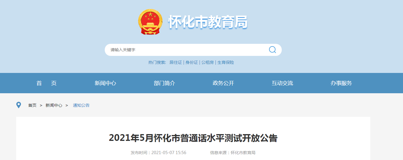 從懷化市教育局發(fā)布的《2021年5月湖南懷化普通話水平測試開放公告》得知,2021年5月湖南懷化普通話考試成績查詢及證書領(lǐng)取已公布,成績查詢時間為考后30個工作日,具體詳情如下: