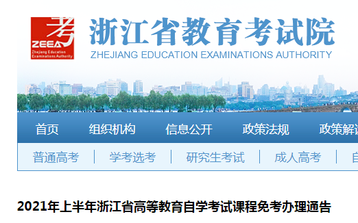 自學考試頻道從浙江省教育考試院了解到,2021年上半年浙江省高等教育自學考試課程免考辦理通告已公布,具體如下: