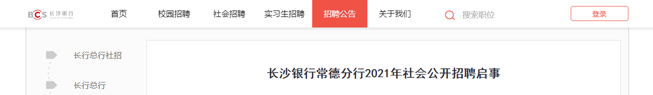 長沙銀行常德分行2021年社會公開招聘啟事已發(fā)布,報名時間:自發(fā)布之日起至2021年7月27日24:00,現(xiàn)將相關(guān)信息發(fā)布如下: