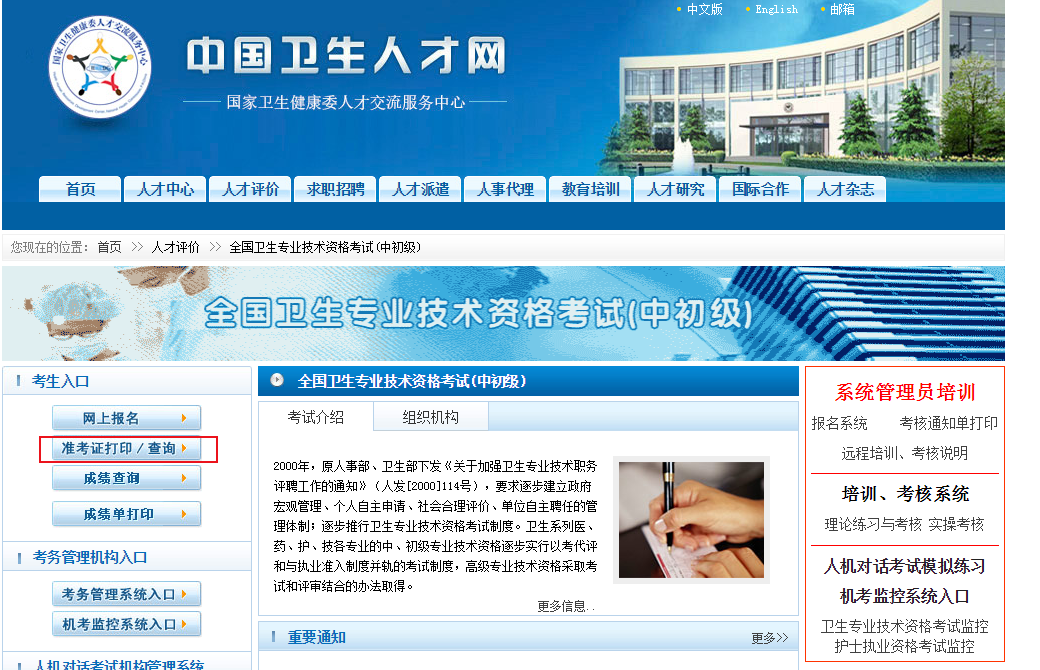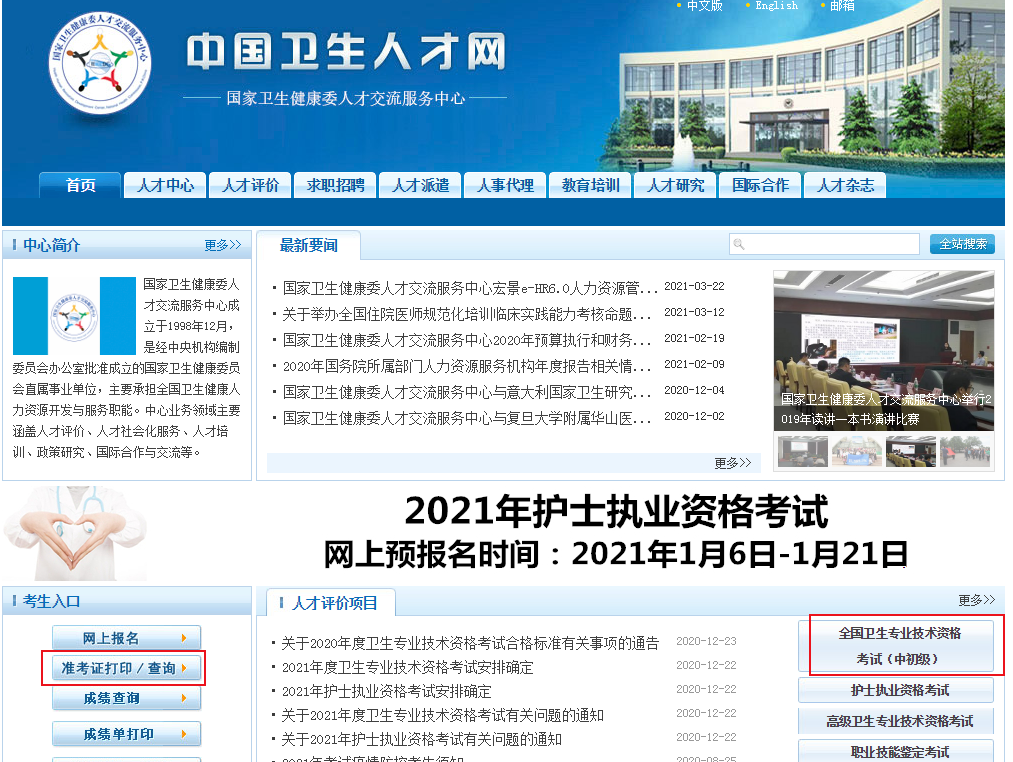 報(bào)名成功的考生可于3月25日-4月18日登錄中國衛(wèi)生人才網(wǎng),點(diǎn)擊“2021年度全國衛(wèi)生專業(yè)技術(shù)資格考試準(zhǔn)考證打印入口”,填寫姓名、證件類型、證件編號(hào),驗(yàn)證碼,下載打印準(zhǔn)考證作為參加考試的憑證。