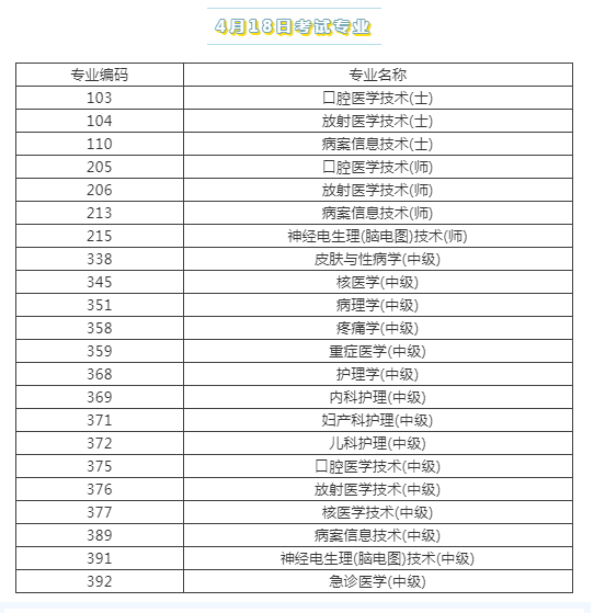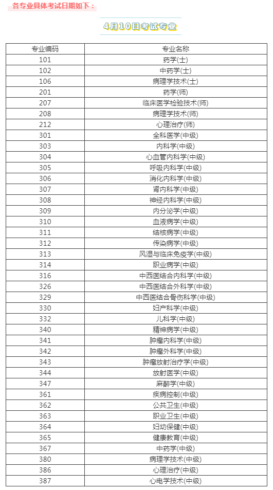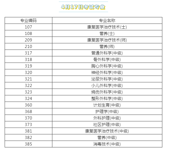 藥學(xué)(師,專業(yè)代碼201)、臨床醫(yī)學(xué)檢驗(yàn)技術(shù)(師,專業(yè)代碼207)專業(yè)考試時(shí)間為4月10、11日,護(hù)理學(xué)(中級(jí),專業(yè)代碼368)專業(yè)考試時(shí)間為4月17、18日,這三個(gè)專業(yè)考試采用平行卷方式,組卷方案相同,平行卷的難度一致。報(bào)考以上專業(yè)的考生參加其中1天的考試,請(qǐng)注意查看準(zhǔn)考證上的考試時(shí)間,切勿錯(cuò)過考試。